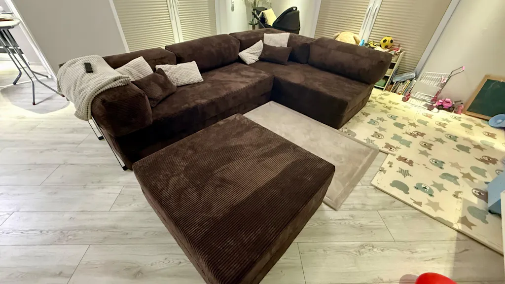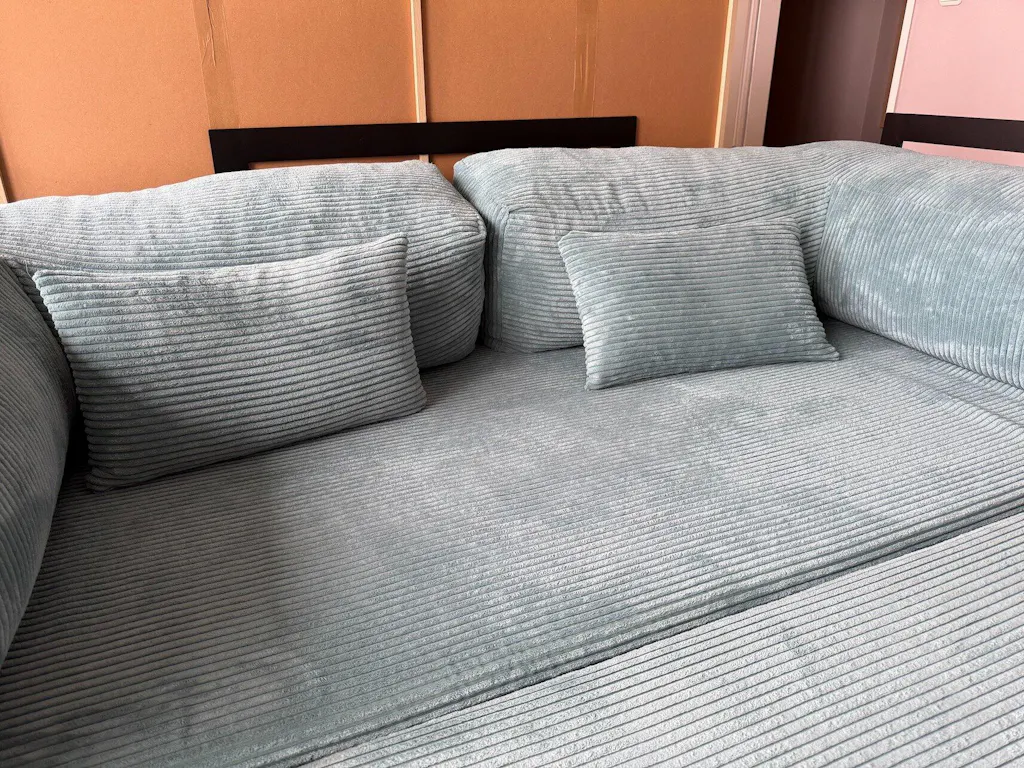 Das Sofa selbst hat mich wirklich überzeugt. Die Stoffqualität ist sehr hochwertig, das Material fühlt sich sowohl robust als auch angenehm an und der Liegekomfort entspricht genau meinen Erwartungen. Auch die Farbe stimmt vollständig mit den Produktbildern auf der Website überein. Insgesamt wirkt das Sofa sehr hochwertig und stabil verarbeitet.