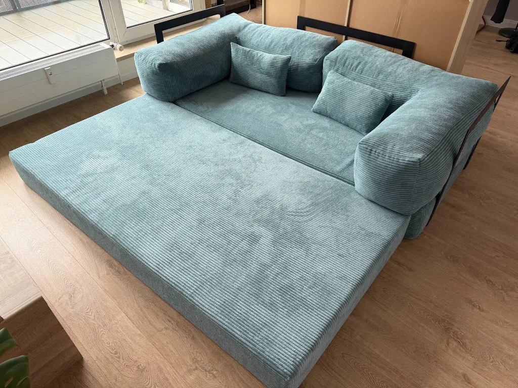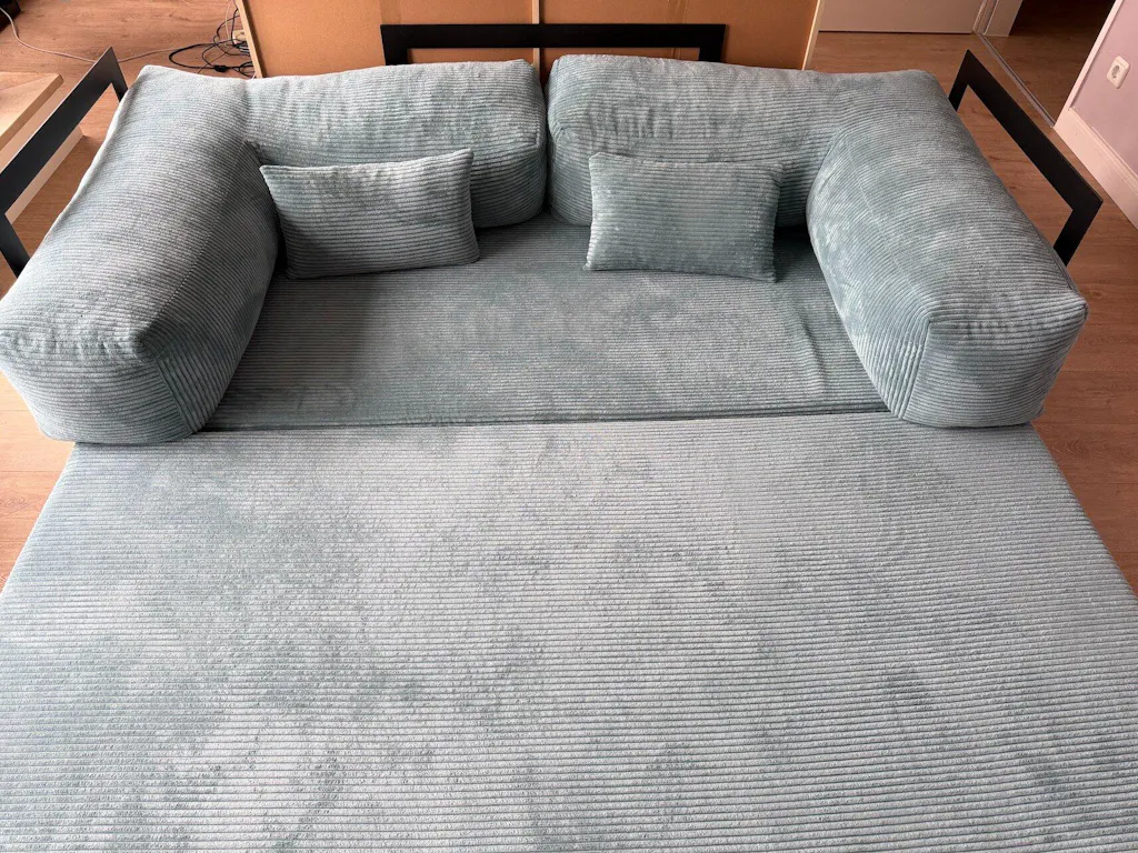 Ich habe diese Schlafsofa jetzt seit einem halben Jahr in Gebrauch. Ursprünglich habe ich sie mit der Absicht gekauft, sie hauptsächlich als Bett zu nutzen. Obwohl die Lieferzeit mit fast fünf Wochen lang war, fand ich es super, dass der Lieferdienst das Sofa direkt in die Wohnung gebracht hat – nicht nur bis vor die Haustür unten.
