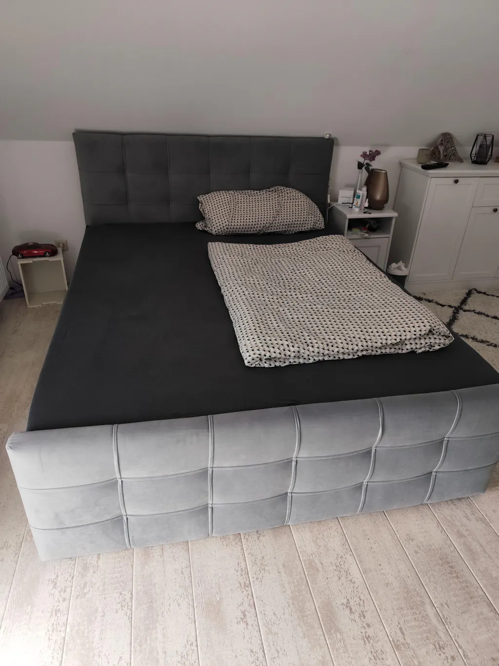Das ist ein wirklich schönes Bett. Die Samt Optik und das Muster geben dem Bett ein tolles Aussehen. Zudem ist es sehr bequem und der Härtegrad genau richtig. Die Bettkästen sind groß und bieten viel Stauraum.